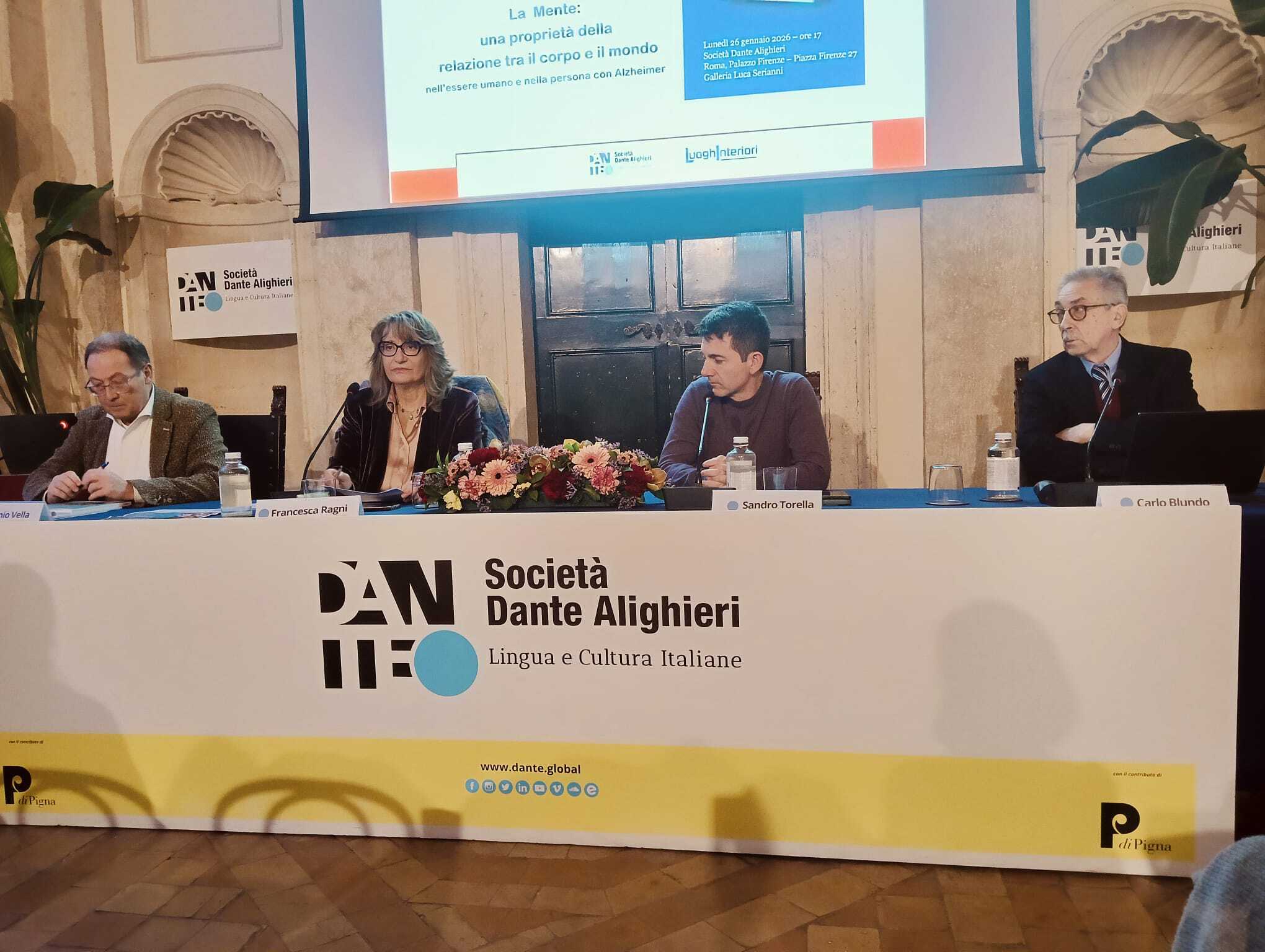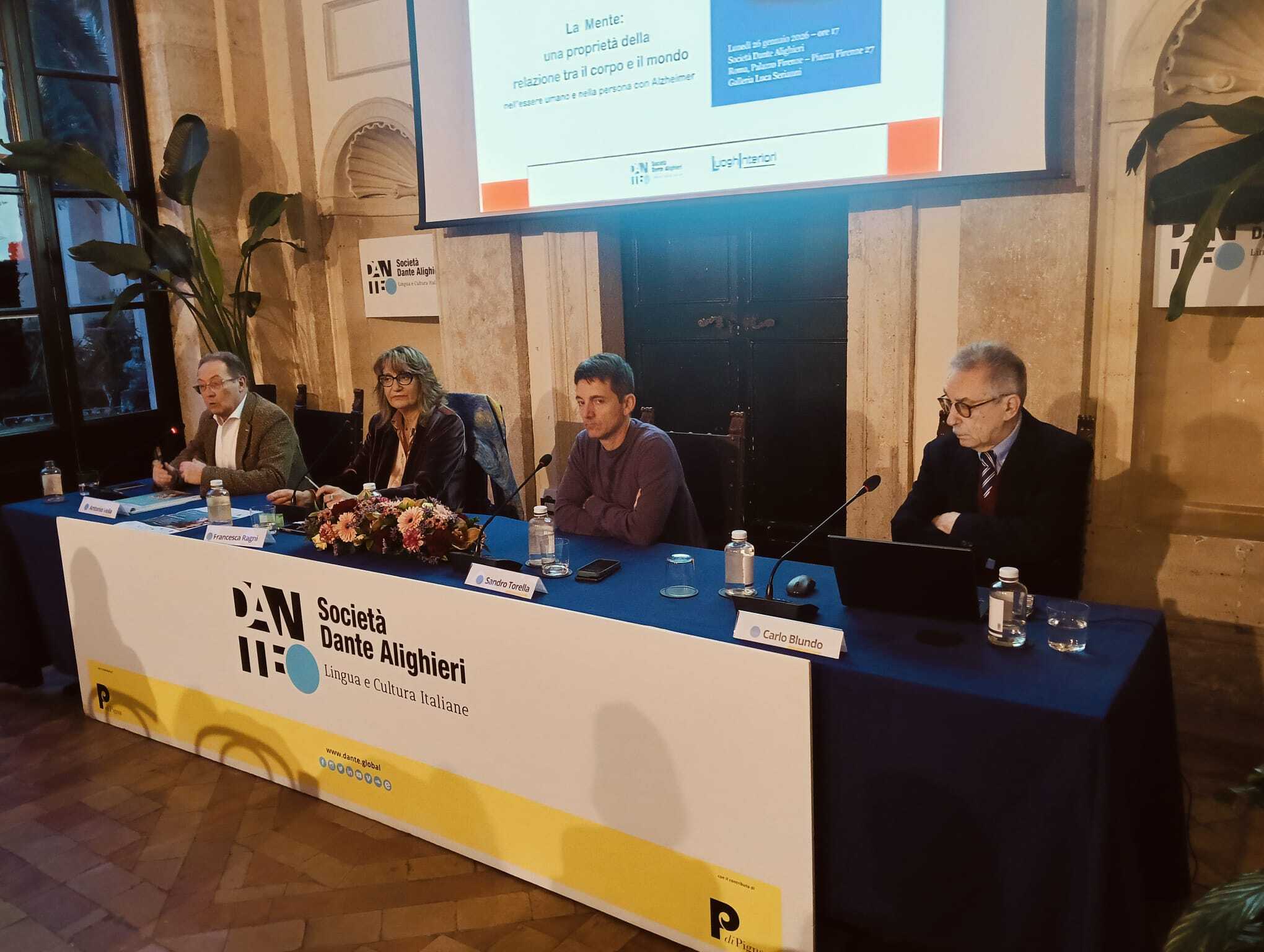 All’iniziativa, presieduta dal Segretario generale della Società Dante Alighieri Alessandro Masi, parteciperanno, insieme alla curatrice della pubblicazione, il neurologo e psichiatra Carlo Blundo, il regista e attore Sandro Torella e l’editore Antonio Vella. Coordinerà l’evento Pasquale Guerra, docente e scrittore.